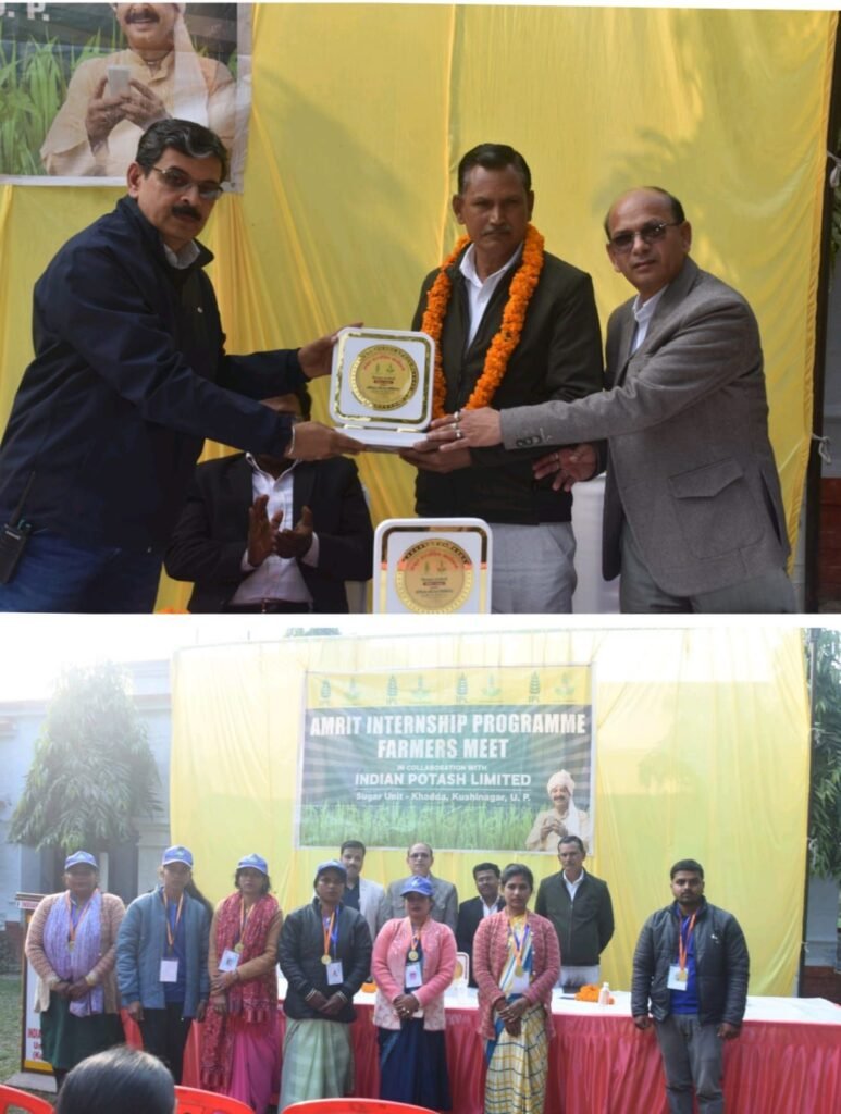 आई.पी.एल फाउंडेशन द्वारा संचालित अमृत इंटर्नशिप कार्यक्रम के अंतर्गत आई.पी.एल शुगर मिल खड्डा, कुशीनगर यूनिट परिसर में किसान गोष्ठी का आयोजन किया गया। कार्यक्रम का उद्देश्य किसानों और अमृत इंटर्न को गन्ना खेती से जुड़ी व्यवहारिक एवं तकनीकी जानकारी प्रदान करना रहा।